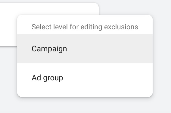 In the Exclusions section, click Add Exclusions. Select either the full Campaign or a specific Ad Group to exclude the invalid segment from.